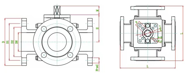 X型四通法兰球阀采用顶装式固定球四面座阀芯结构,密封性能好、耐沙粒磨损、使用寿命长。在电站系统中称为双向供水转阀(在石化系统中也称空气换向切换阀)适用于液体、气体、粉尘、浆料及舍固体颗粒介质的循环系统。X型四通法兰球阀替代该工艺管汇和阀组的工作原理,简化程序、方便操作、降低成本、便于控制、同步性好,可实现在一定时间间隔正反供水的自动切换。